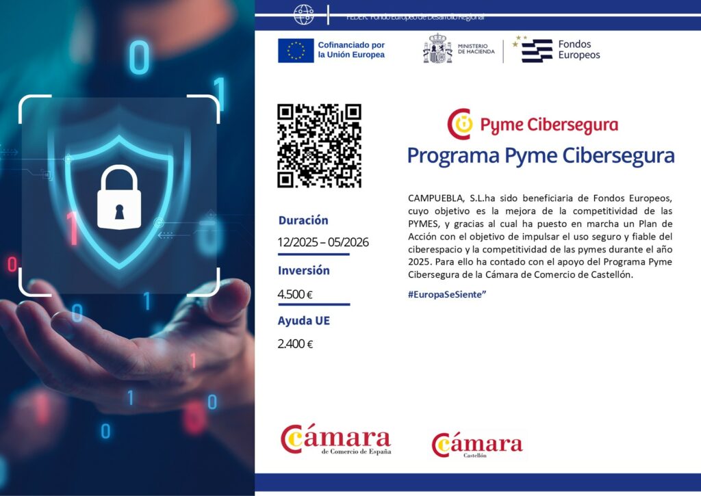 La seguridad digital en Campuebla es un hecho: seguimos avanzando para ofrecer a nuestros clientes un entorno cada vez más seguro y fiable. Por ello, hemos participado en el Programa Pyme Cibersegura, una iniciativa que impulsa la mejora de la seguridad digital en pequeñas y medianas empresas.
